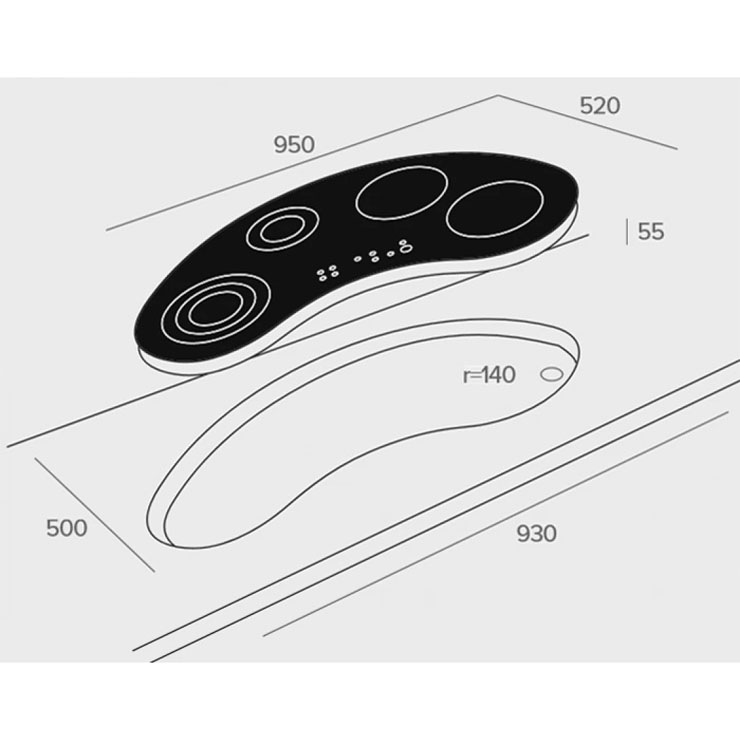 - Mặt bếp bằng kính ceramic EuroKera, vát cạnh.