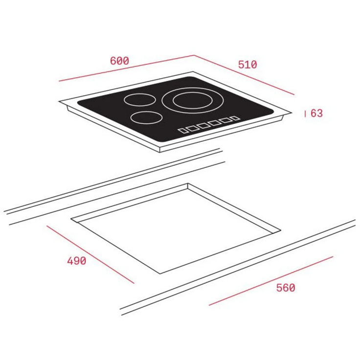 - 01 bếp có vòng nhiệt đôi Ø 120/180mm; 01 bếp có vòng nhiệt Ø 145mm.