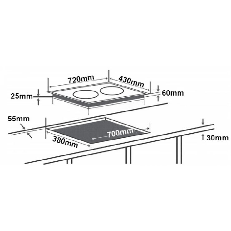 - Kích thước lắp đặt: 700x380mm