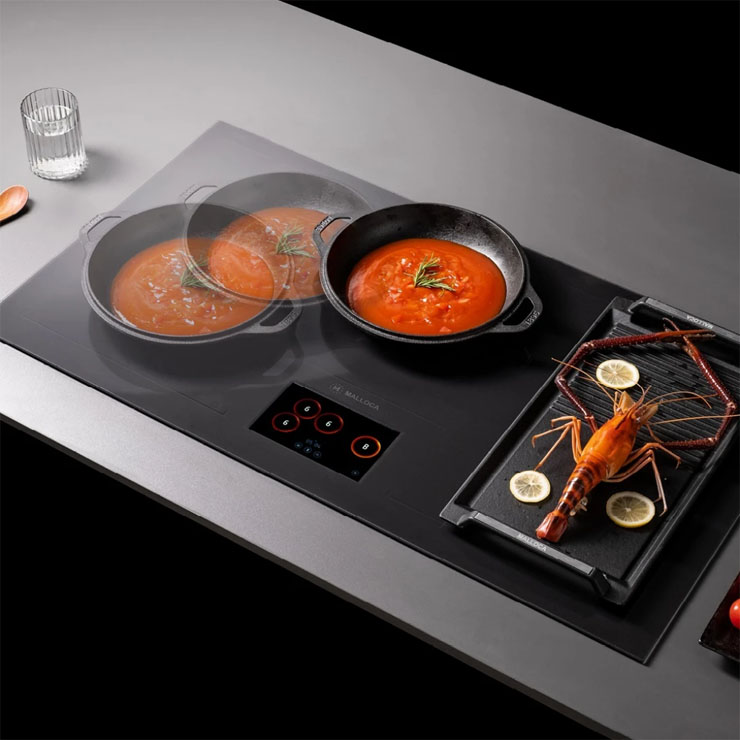 - Bếp từ đa điểm nấu tối đa 6 nồi hoặc chảo