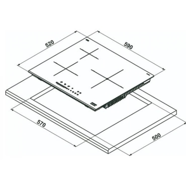 Bản vẽ bếp từ Hafele 533.09.961 3 vùng nấu