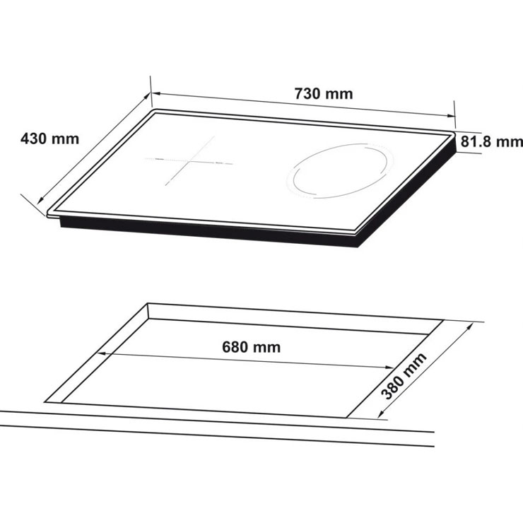 Bản vẽ bếp từ Hafele 536.61.856 HCH7321B Hybrid Hob