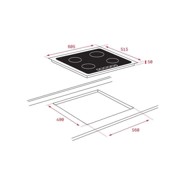 - Kích thước mặt lắp âm: W560(mm) x D490(mm).