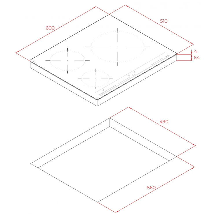 Bản vẽ kỹ thuật bếp TEKA 112520006 điện từ có 3 bếp