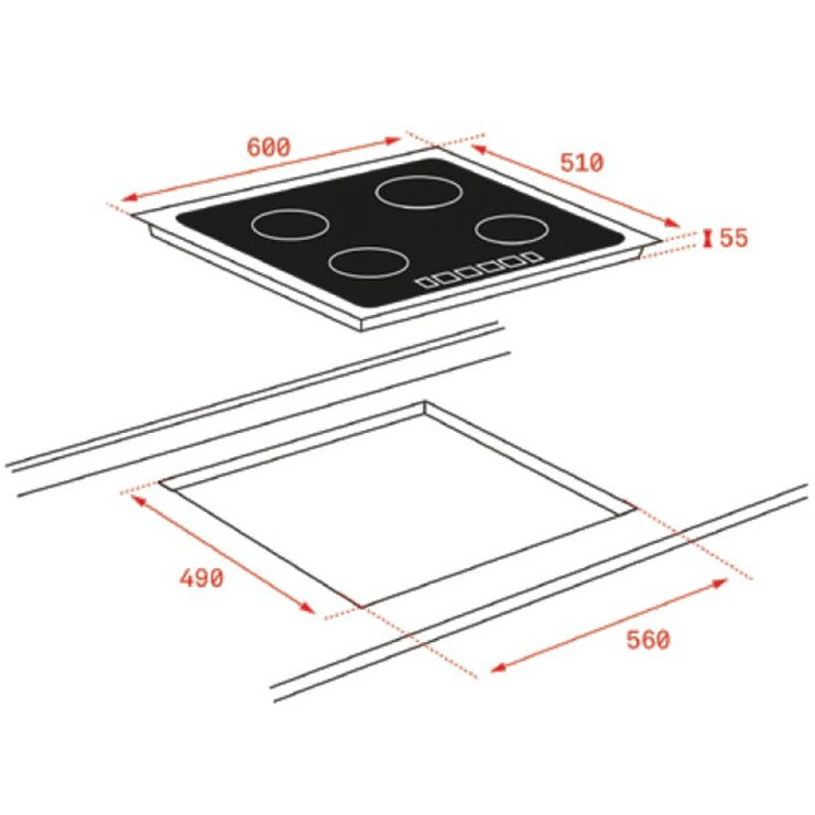 - 03 cooking zones: 01 vùng nấu Ø 180/280 mm; 01 vùng nấu Ø 180 mm; và 01 vùng nấu Ø 145 mm