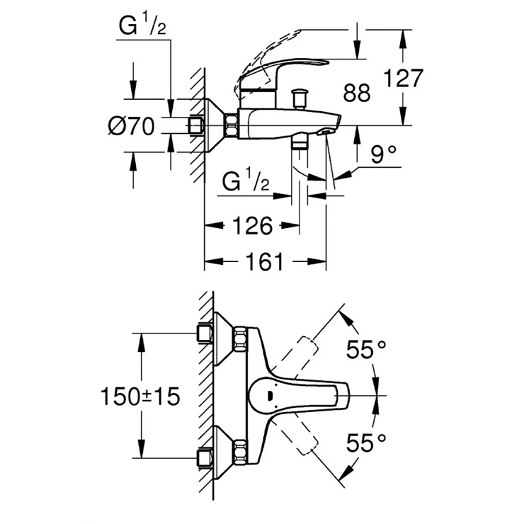 Thông tin cơ bản bộ trộn sen bồn tắm Eurosmart Grohe 33300002 nóng lạnh