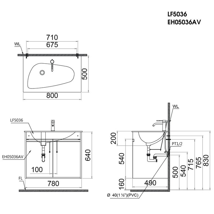 - Tủ lavabo treo tường LF5036+ EH05036AV lắp đặt phù hợp với các vòi sau: B224C, B430CPW, B305C, B370C, B400CP, B460C, B490CP, B680CT, B150CP, B230C …