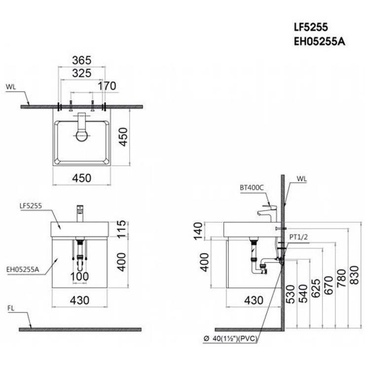 Bản vẽ bộ tủ lavabo rửa tay Caesar LF5255 EH05255ATGV