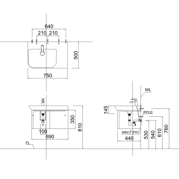 Bản vẽ Bộ Tủ Lavabo Caesar Treo Tường LF5372/EH05372AV