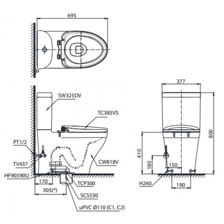 - Phù hợp lắp đặt với nắp rửa điện tử WASHLET (tùy chọn)