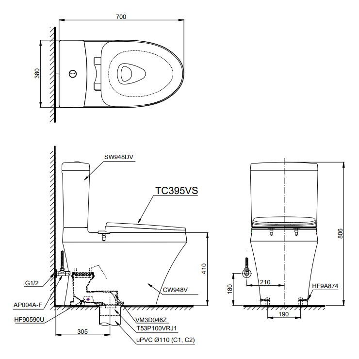 - Nắp bồn cầu TC395VS
