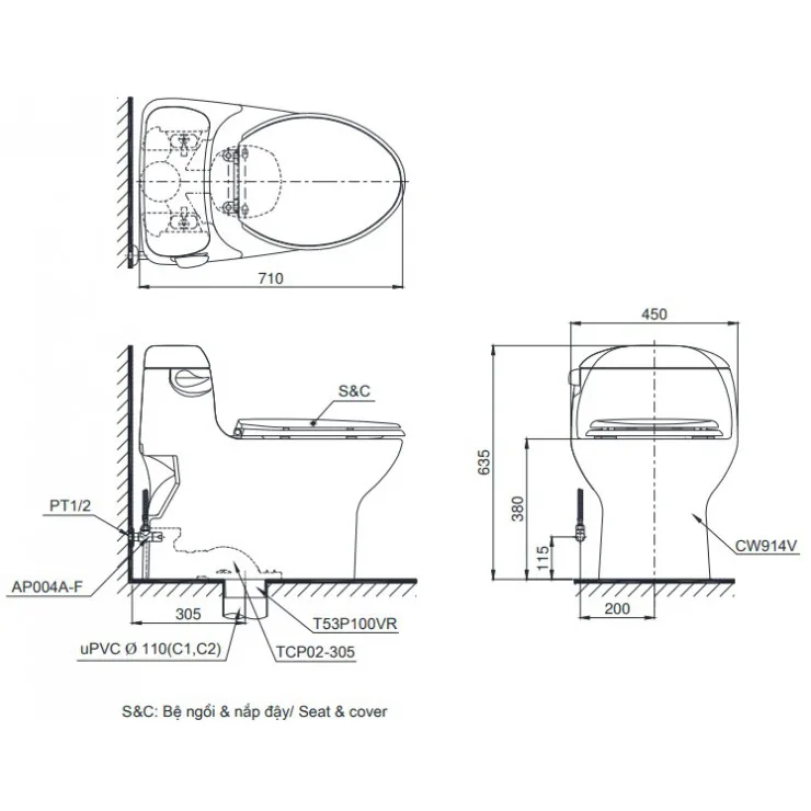 Bản vẽ kỹ thuật xí bệt TOTO MS 914R T8: