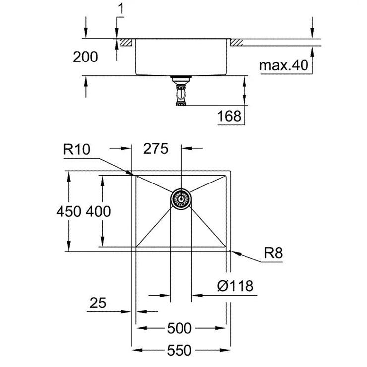 Bản vẽ kích thước chậu bếp Grohe 31726SD0 K700