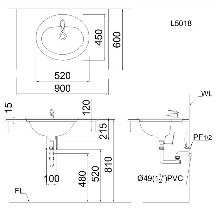 Bản vẽ kỹ thuật chậu Caesar L5018