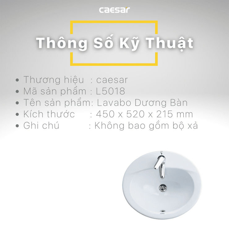 - Tên sản phẩm: Chậu rửa mặt lavabo Caesar dương vành