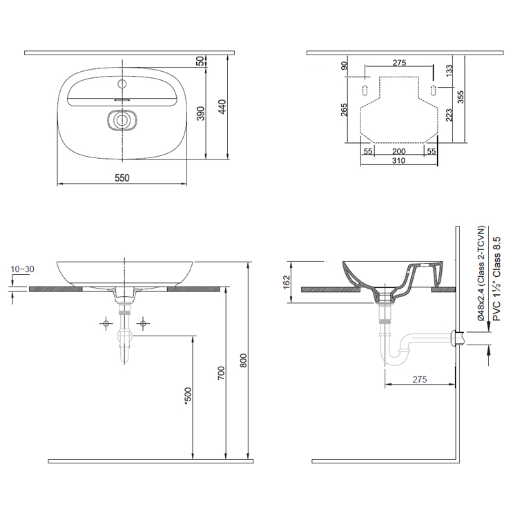 - Chậu rửa đặt bàn, bề mặt trơn bóng, sạch sẽ, vệ sinh