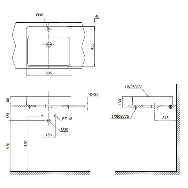 Bản vẽ bồn rửa mặt TOTO LT950C#W