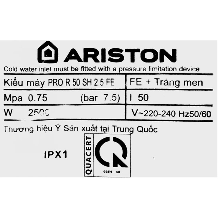 Thông tin máy nước nóng Ariston Pro R 50 SH 2.5 Fe 50 lít ngang