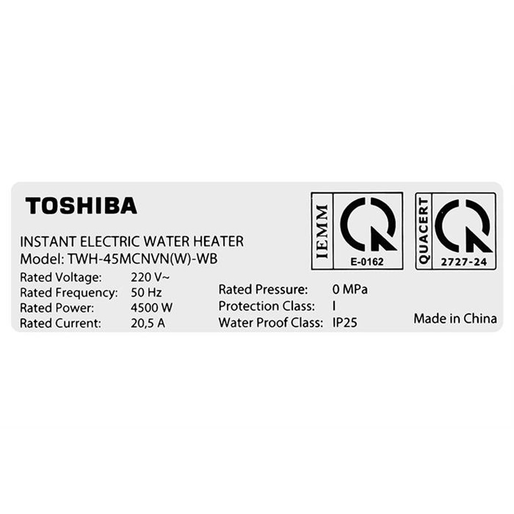 Thông tin cơ bản máy nước nóng trực tiếp TOSHIBA TWH-45MCPVN(S)-WB