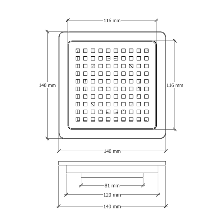 - Kích thước: 140 x 140 mm