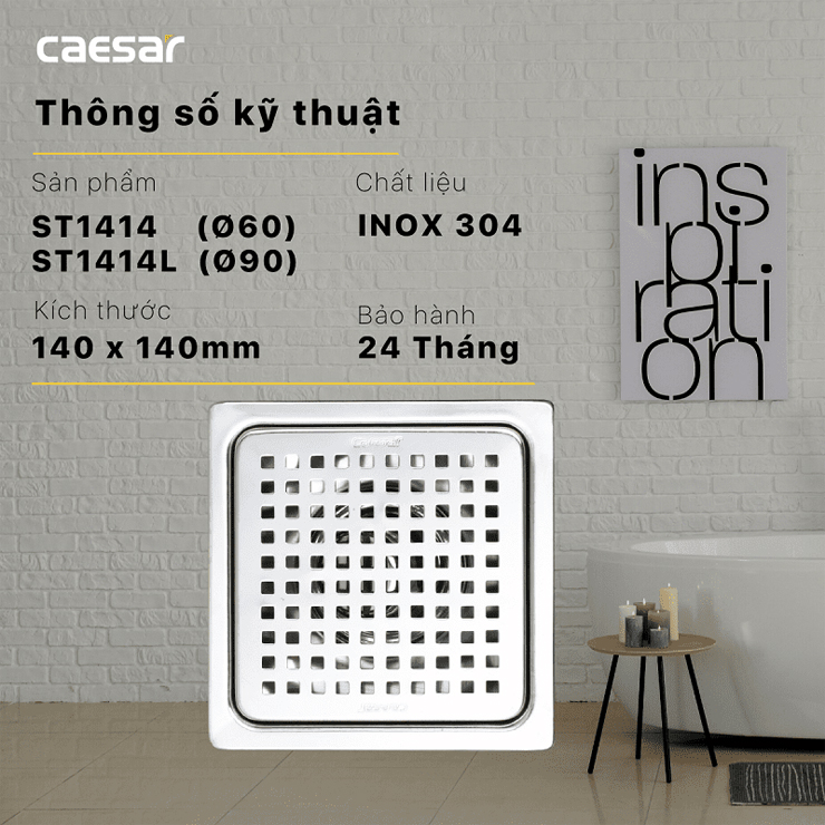 Thông tin phễu thoát sàn Caesar ST1414L