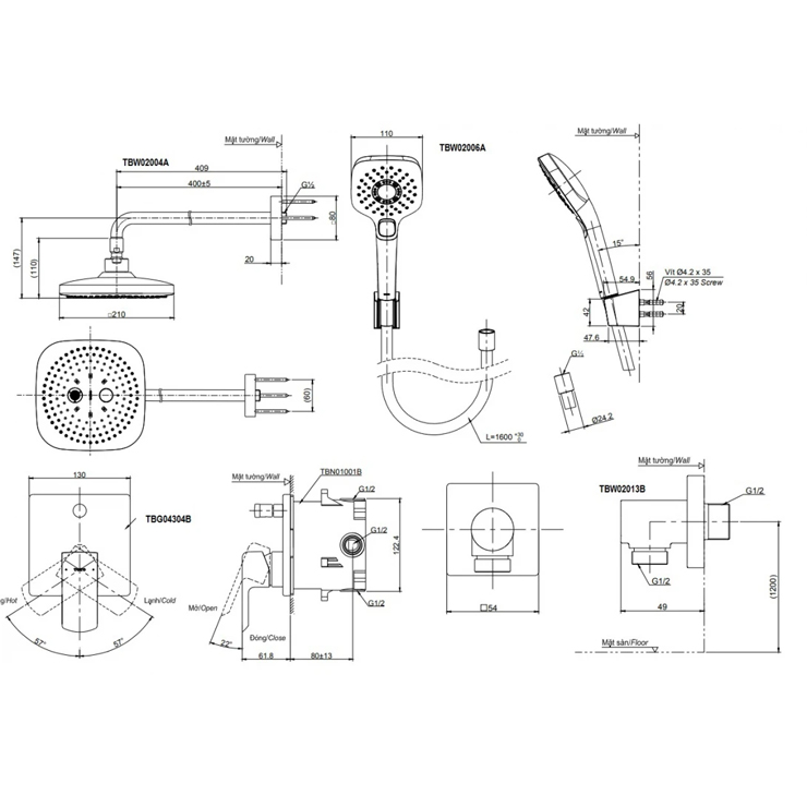 Thông tin vòi sen TOTO TBG04304BA/TBW02004A/TBW02006A âm tường