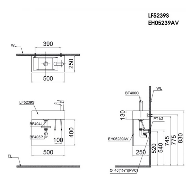 Bản vẽ tủ lavabo rửa tay Caesar LF5239S + EH05239AV