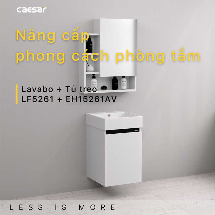 - Chậu rửa mặt CAESAR L5261 liền tủ lavabo EH05261AV cao cấp được thiết kế đẹp của hãng thiết bị vệ sinh Caesar