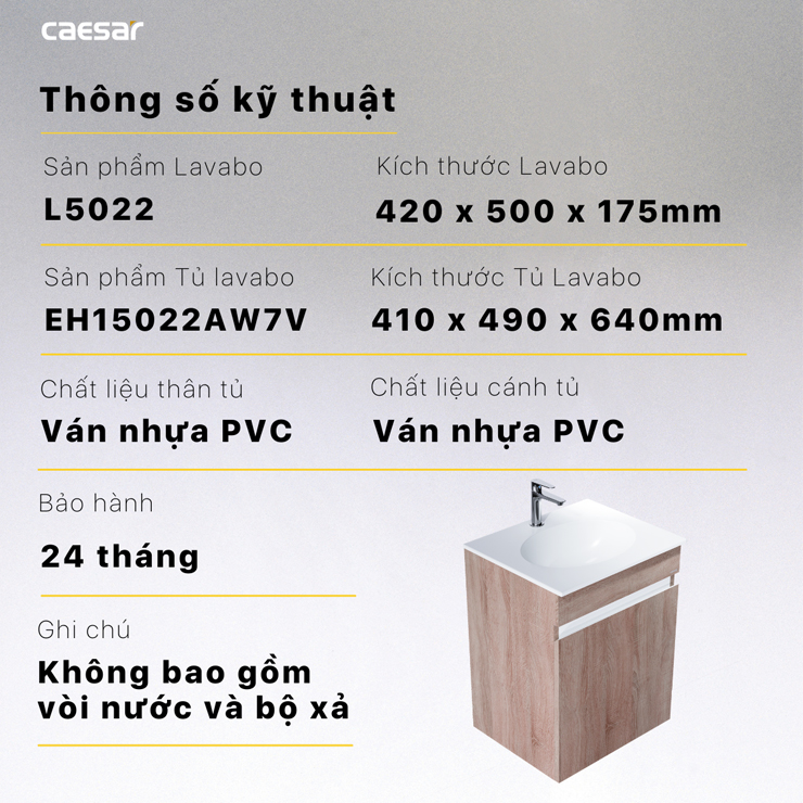 Thông số cơ bản tủ chậu lavabo L5022/EH15022AW7V