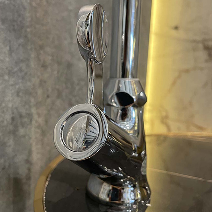 - Chân và vòng chặn đế bằng đồng tạo nên sự vững chắc cho vòi.