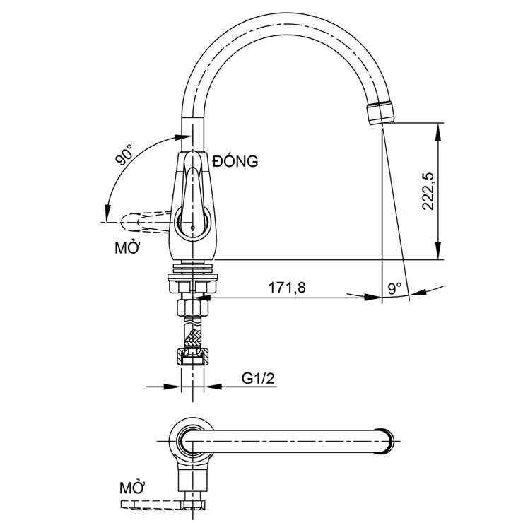 - 2 vít inox tăng đơ, siết chặt giữa vòi và bệ giá đỡ.