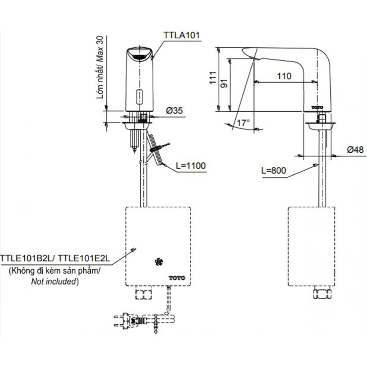 Thông tin vòi lavabo cảm ứng TOTO TTLA101/TTLE101E2L/HAP004A