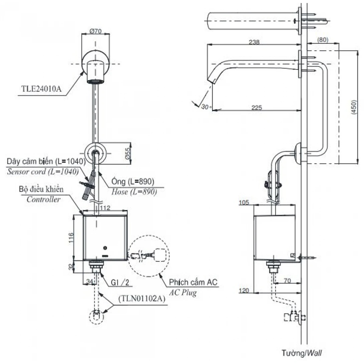 Thông tin vòi cảm ứng TOTO TLE24010A gắn tường