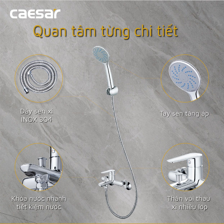 - Vòi sen Caesar nóng lạnh S383C được thiết kế (tinh tế, sang trọng) từ thương hiệu thiết bị vệ sinh CAESAR