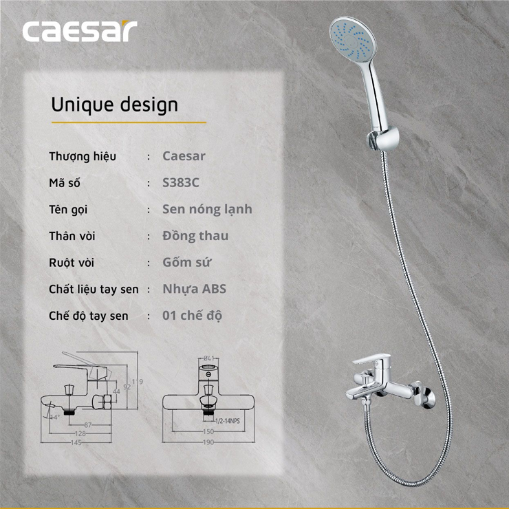 - Tên sản phẩm : Vòi sen nóng lạnh Caesar S383C