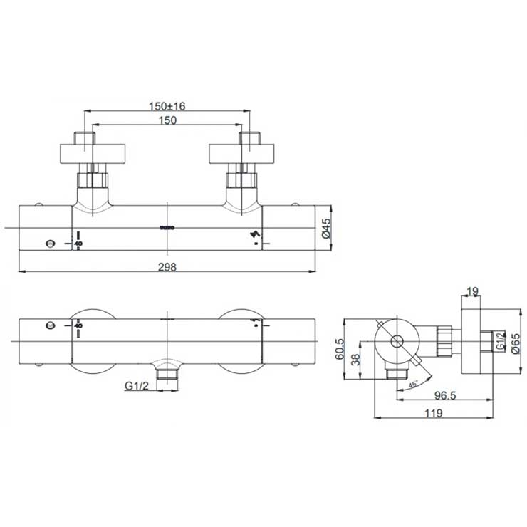 Bản vẽ kỹ thuật vòi hoa sen TOTO TBV01401BA
