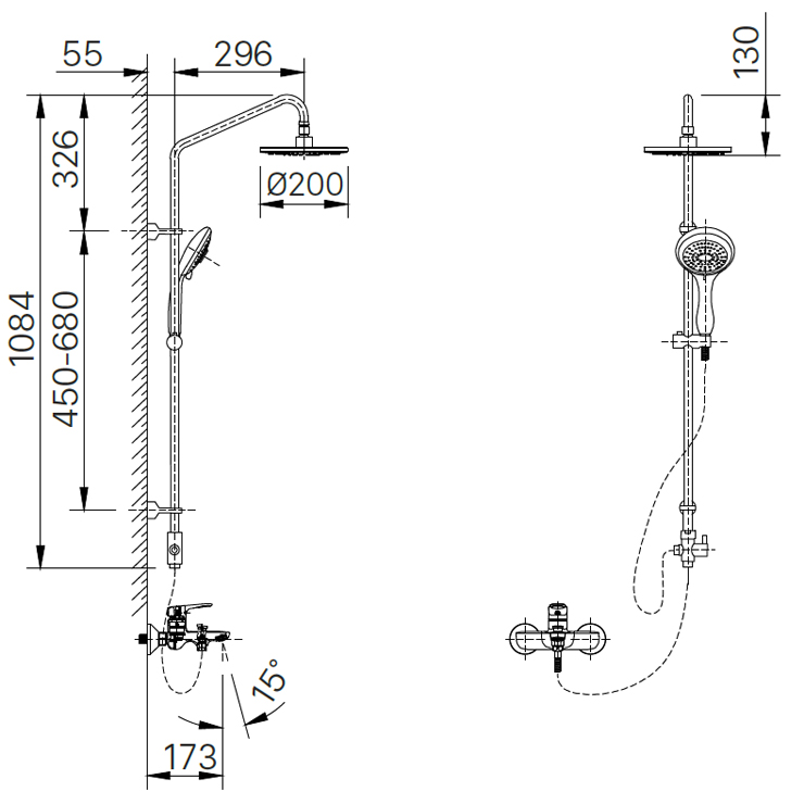 - Sen tắm đứng tiện ích khi sử dụng cho buồng tắm vách kính, mang lại cảm giác sang trọng