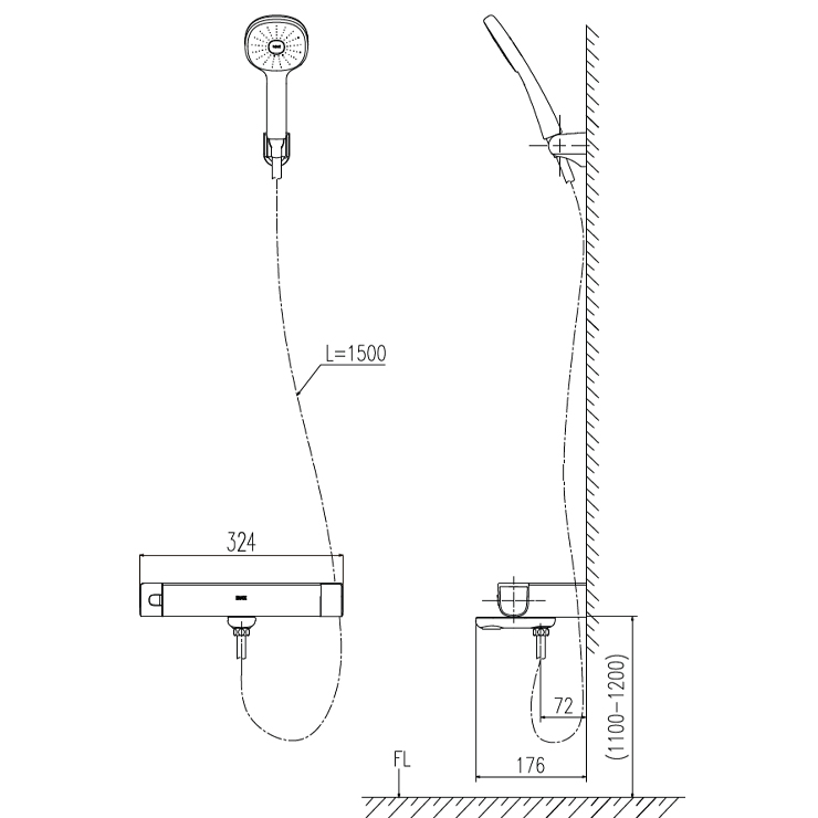 Bản vẽ kích thước sen cây nhiệt độ INAX BFV636T